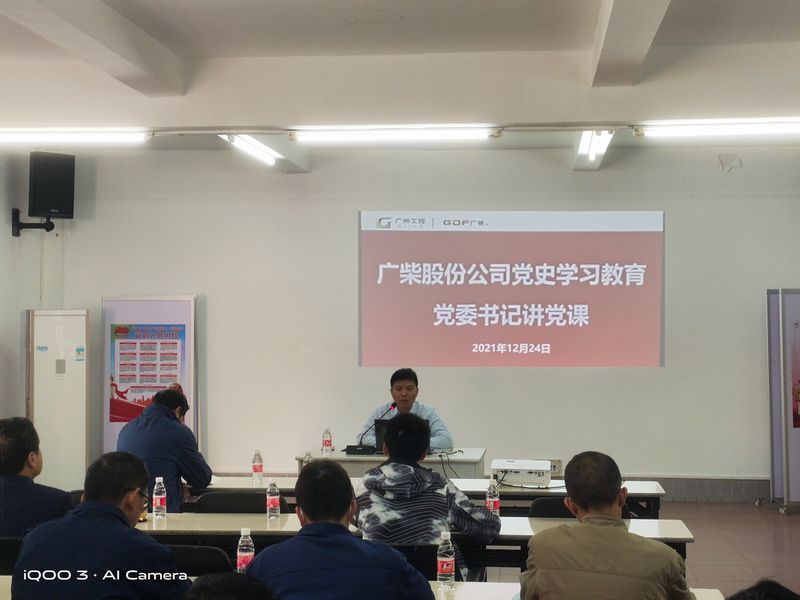 为贯彻落实中央、省委、市委和集团党委关于开展党史学习教育工作的部署要求,持续深入学习贯彻习近平总书记“七一”重要讲话精神,不断感悟伟大建党精神,凝聚砥砺奋进力量,按照广柴股份党史学习教育的系列安排,12月24日,广柴股份党委开展“党委书记讲党课”主题党日活动。公司领导班子成员、中层干部、分(子)公司负责人、总经理办公室、党群工作部和纪委办公室全体工作人员等共30余人参加会议。公司纪委书记王邓霖同志主持会议。